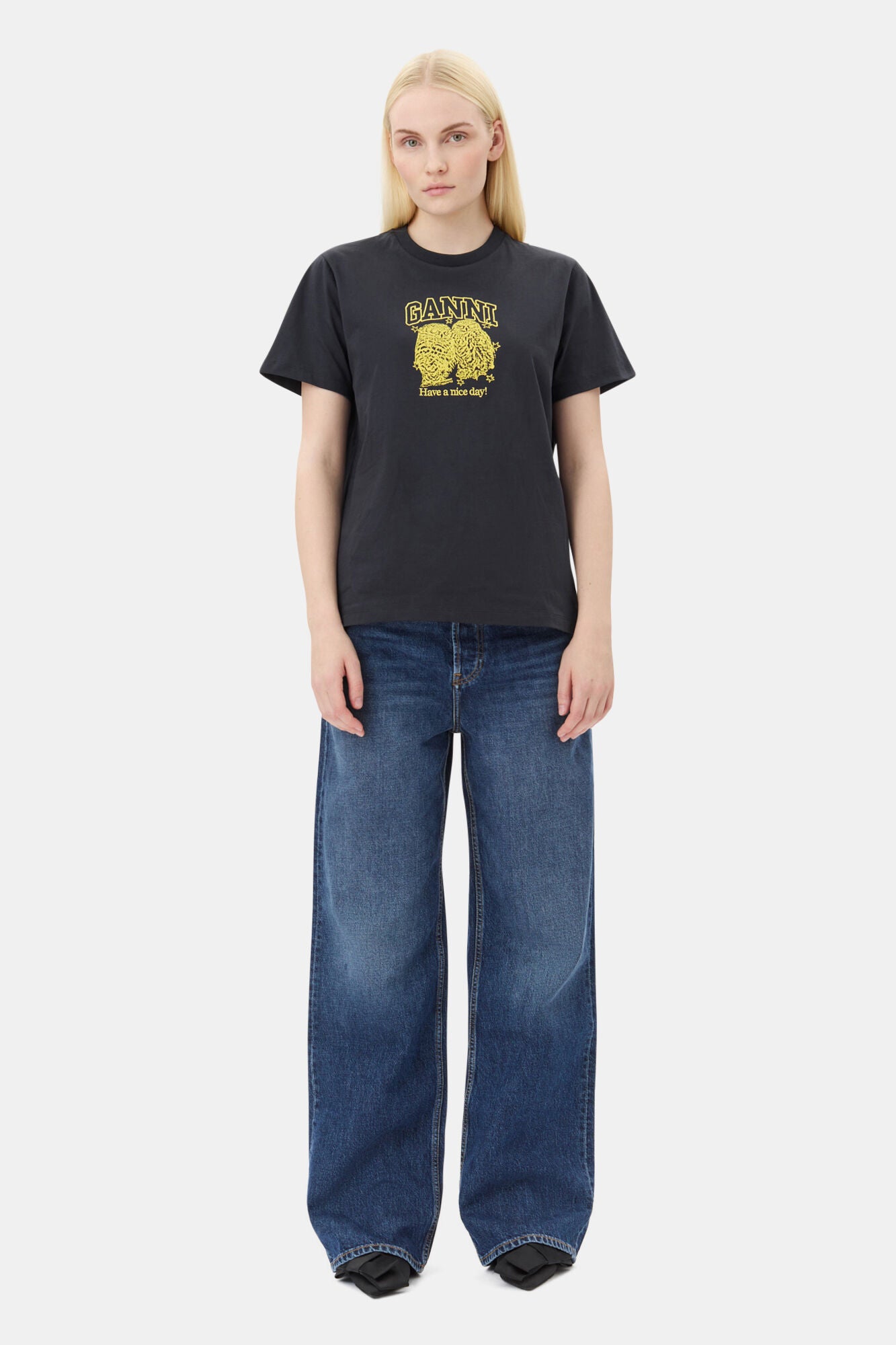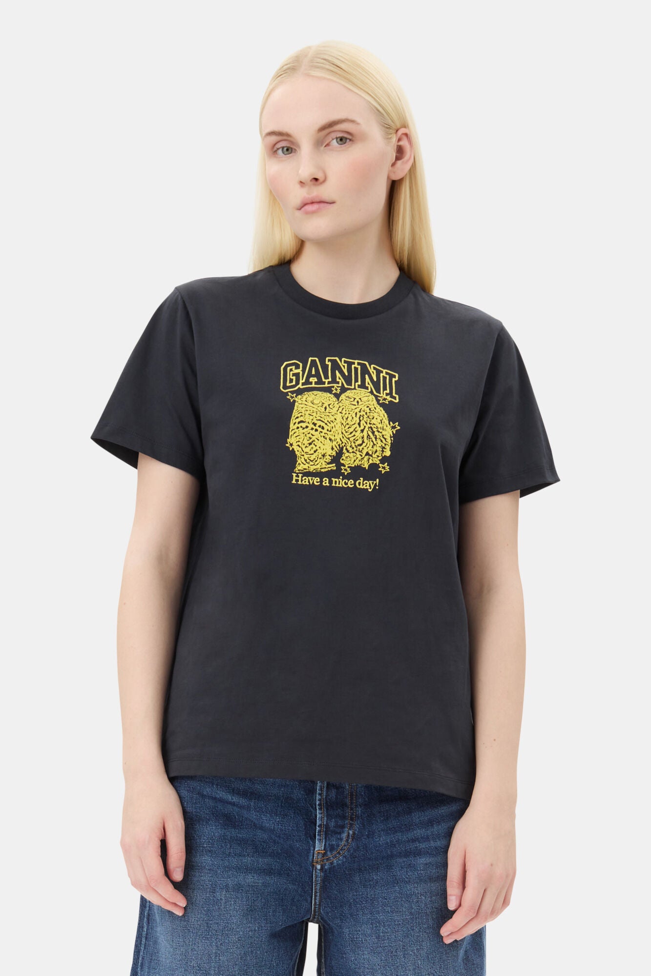 GANNI LOGO OWL T SHI BLACK