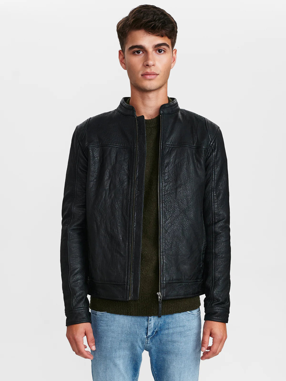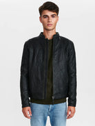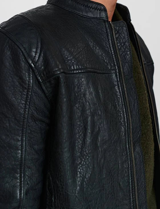 BENTON BLACK LEATHER JACKET-BLACK