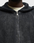 The Reternity Essential Knit Zip Hoodie in Acid Black combines knit comfort with urban functionality. Its acid-dyed finish gives the knit fabric a washed texture with depth without compromising on durability. With a full-length front zipper, relaxed hood, and loose, timeless cut, it offers versatile wearability. The minimalist design is rounded off by a metal Signe emblem on the hem.
