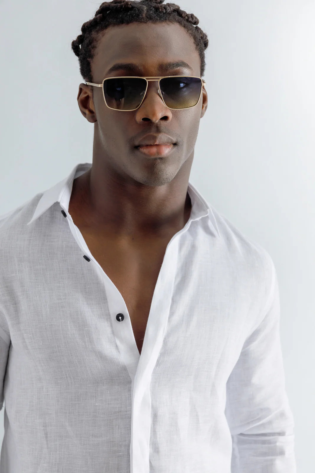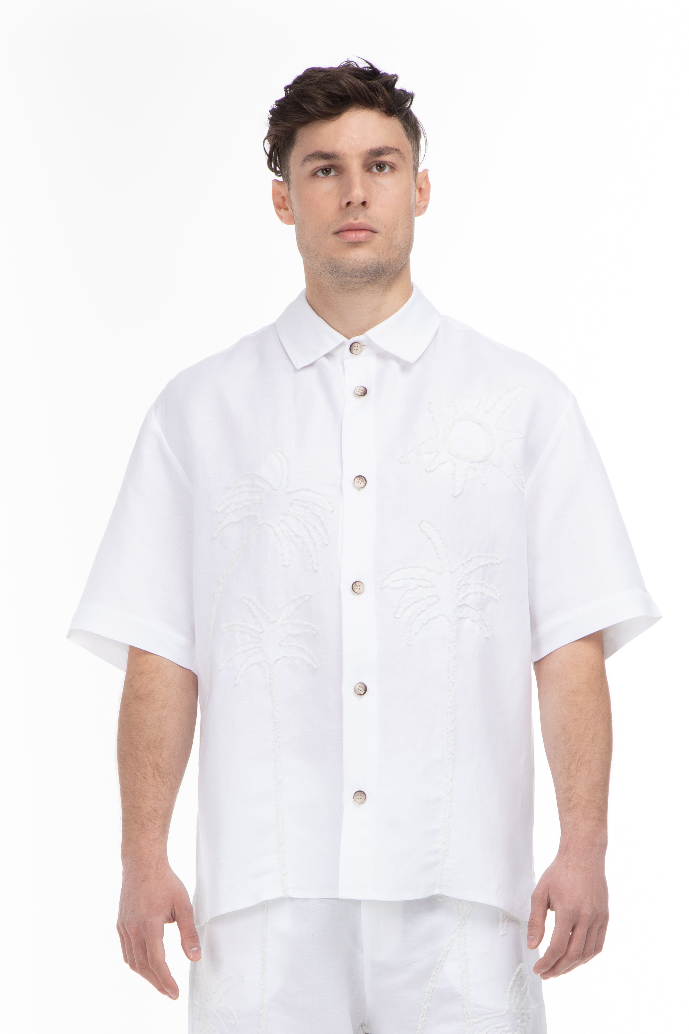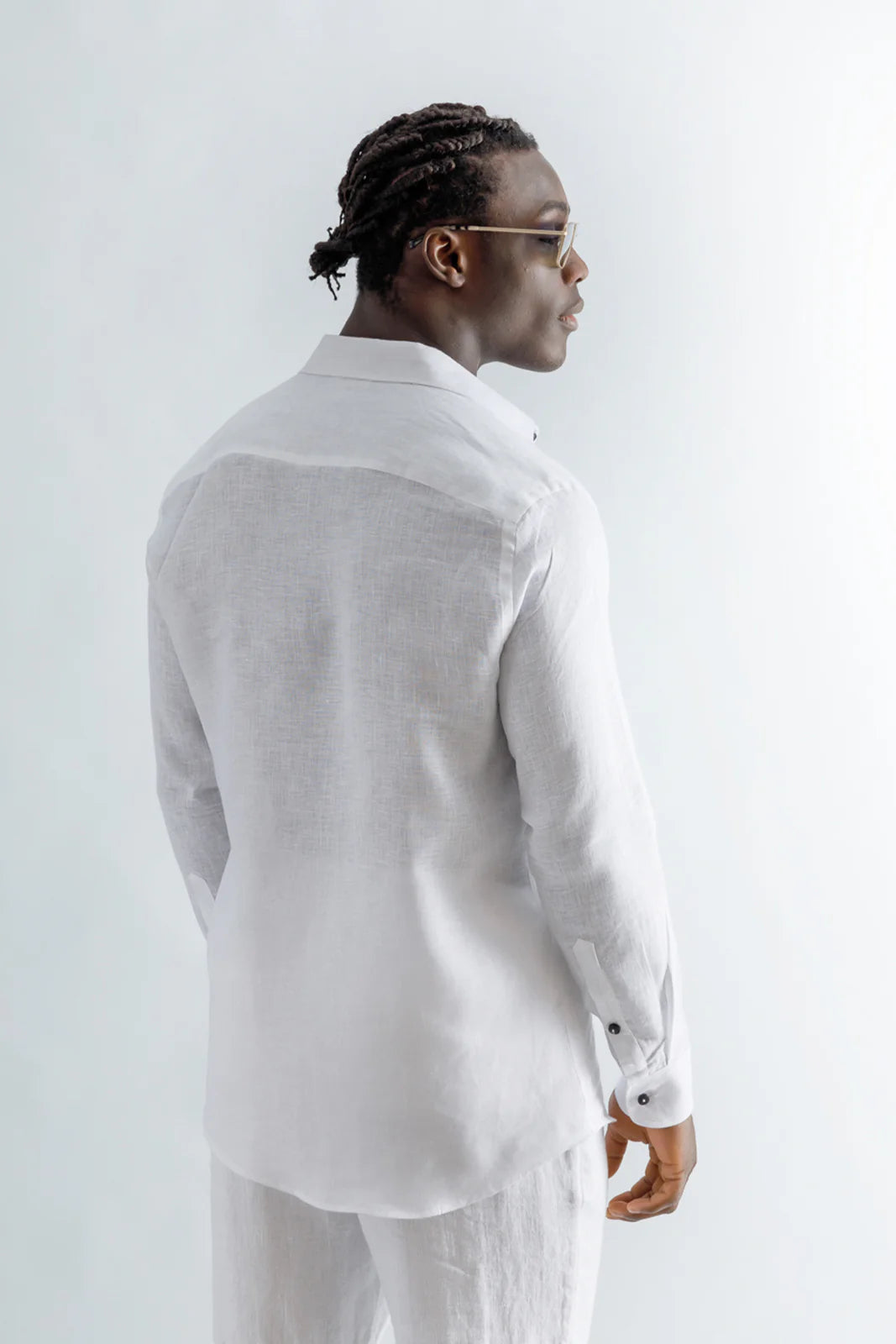 LINEN SHIRT WITH CLASSIC COLLAR-WHITE