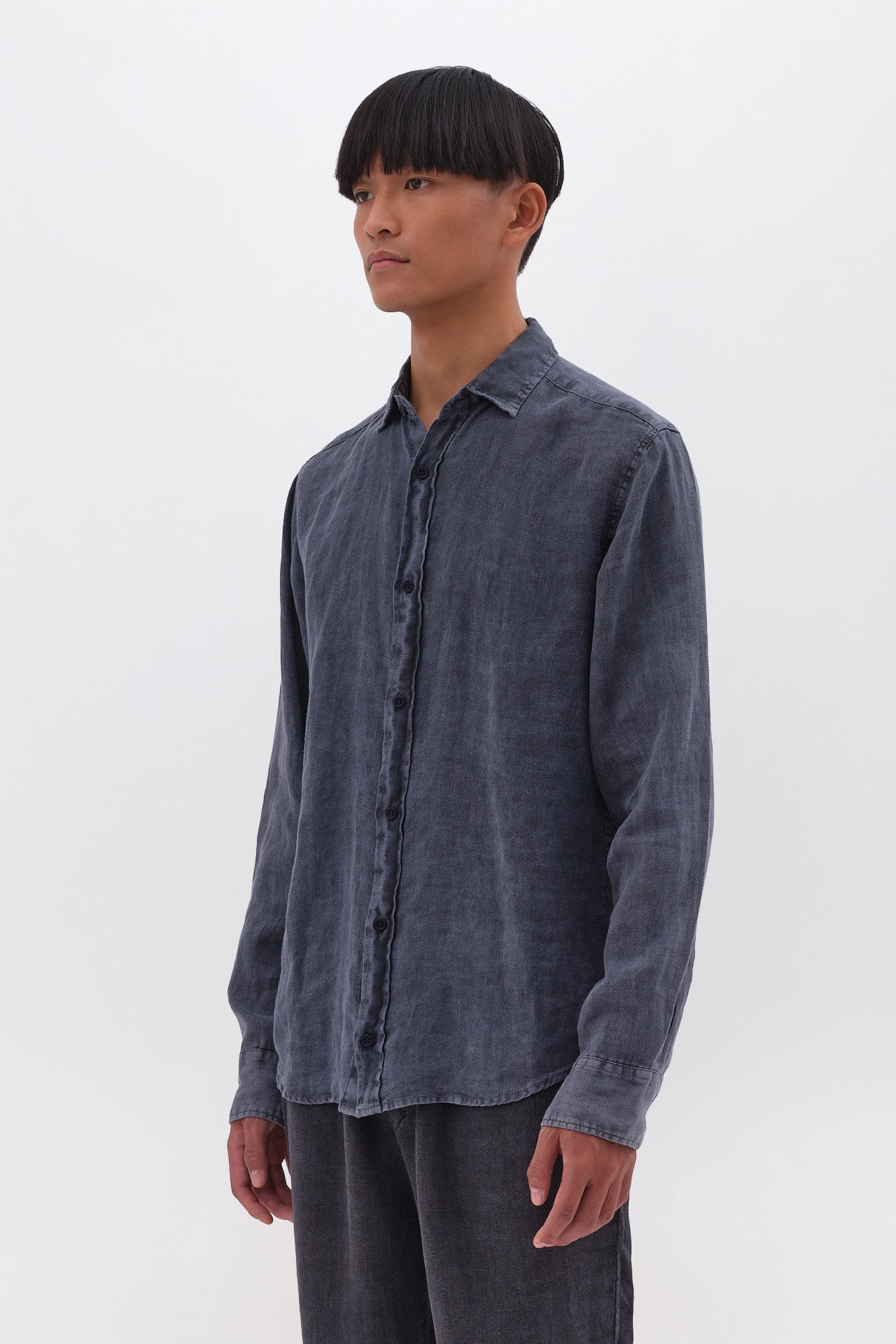 CLASSIC COLLAR LINEN SHIRT VINTAGE DYE-VINTAGE PURPLE