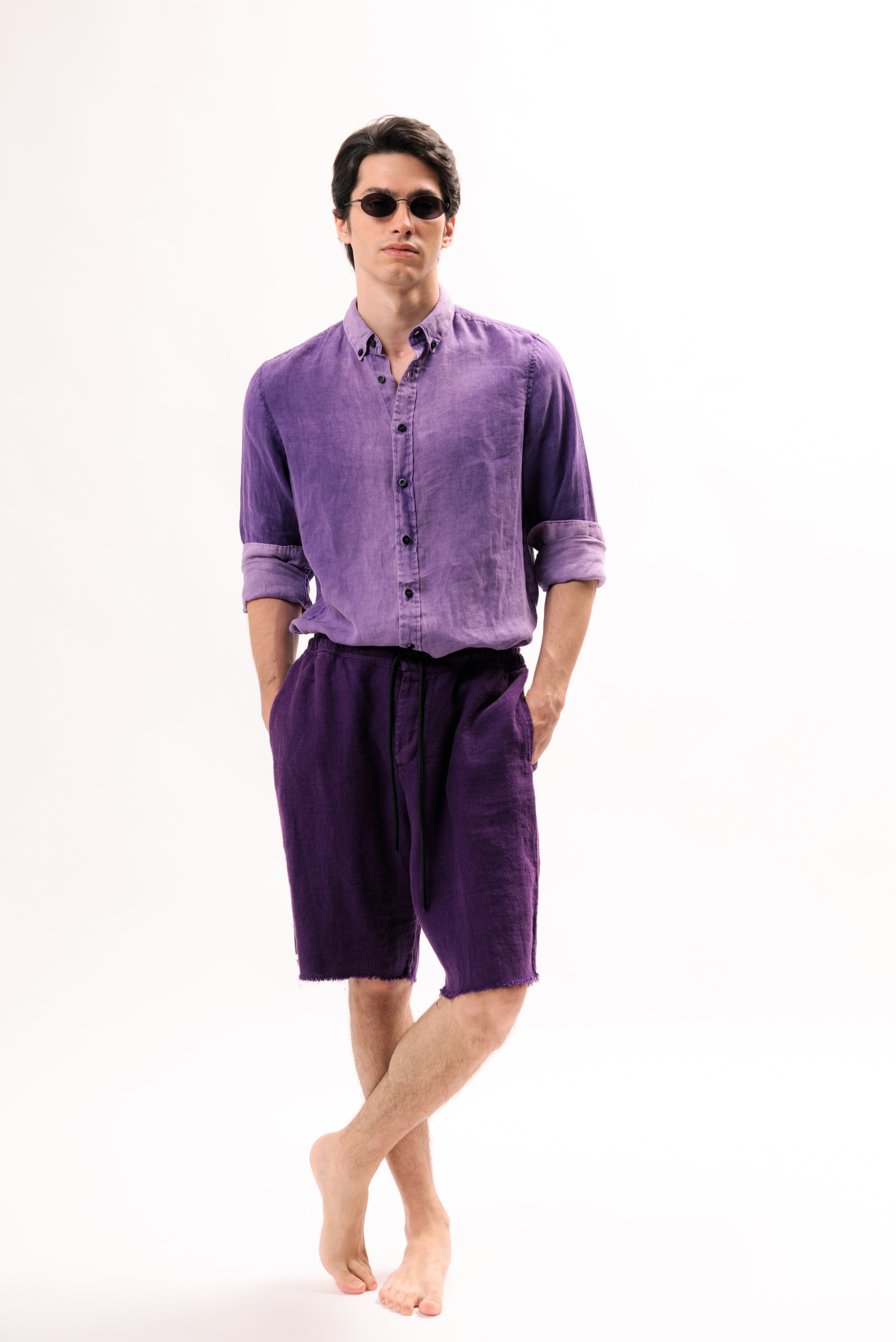 CLASSIC COLLAR LINEN SHIRT VINTAGE DYE-VINTAGE PURPLE