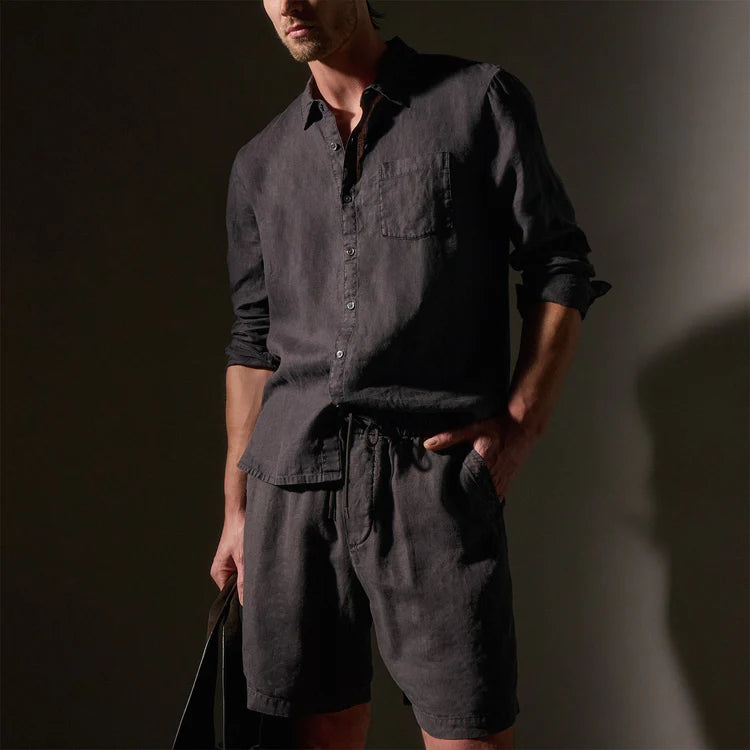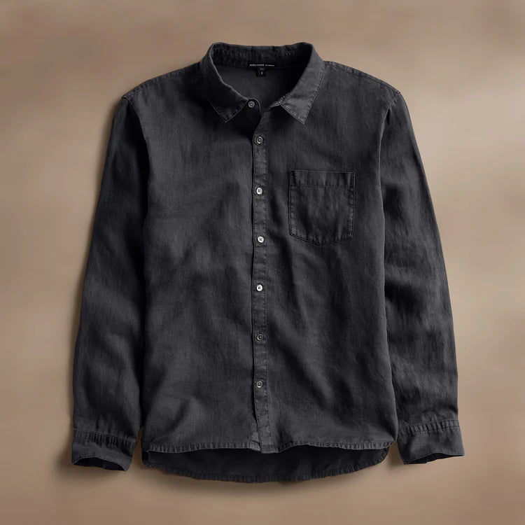 This Linen Shirt is made in our classic lightweight linen that is breathable and soft. Style details include a shirt collar, button front closure, full length sleeves with placket at cuffs, back yoke, chest pocket, shirttail hem. Garment dyed. Relaxed fit.