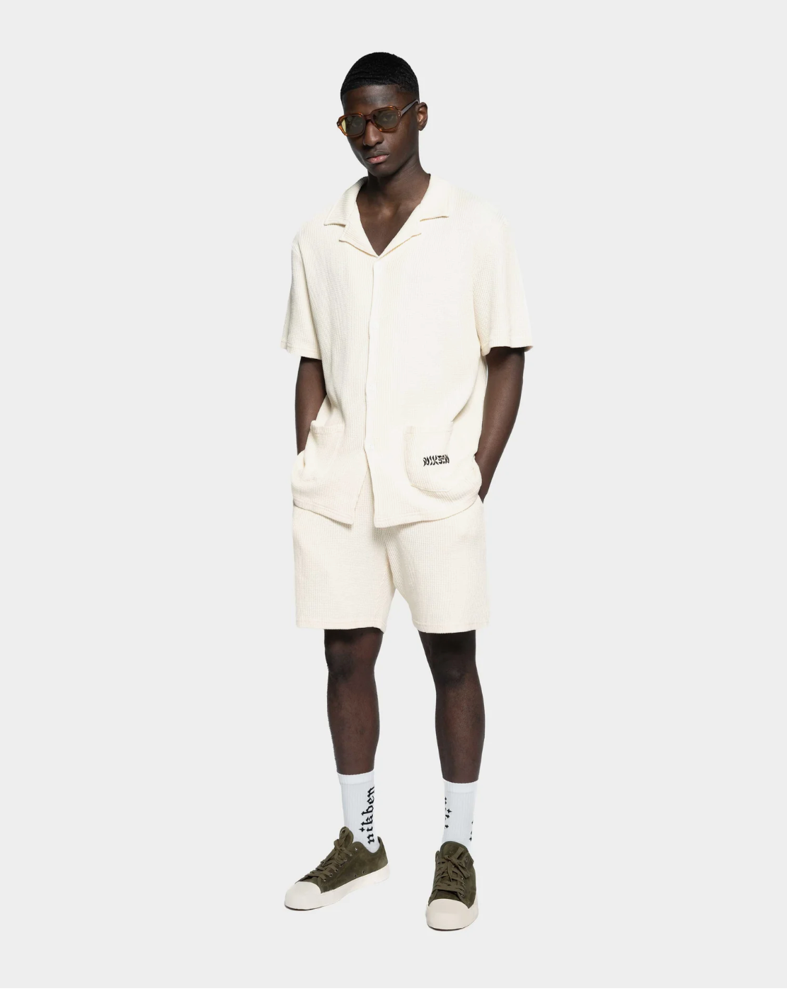 Waffle Havana Vanilla shirt embodies a relaxed style with its waffle-patterned fabric, short-sleeved design, and relaxed fit. It features a fine embroidered logo and two handy pockets. This garment-dyed shirt is a testament to style and is crafted from 100% organic cotton.