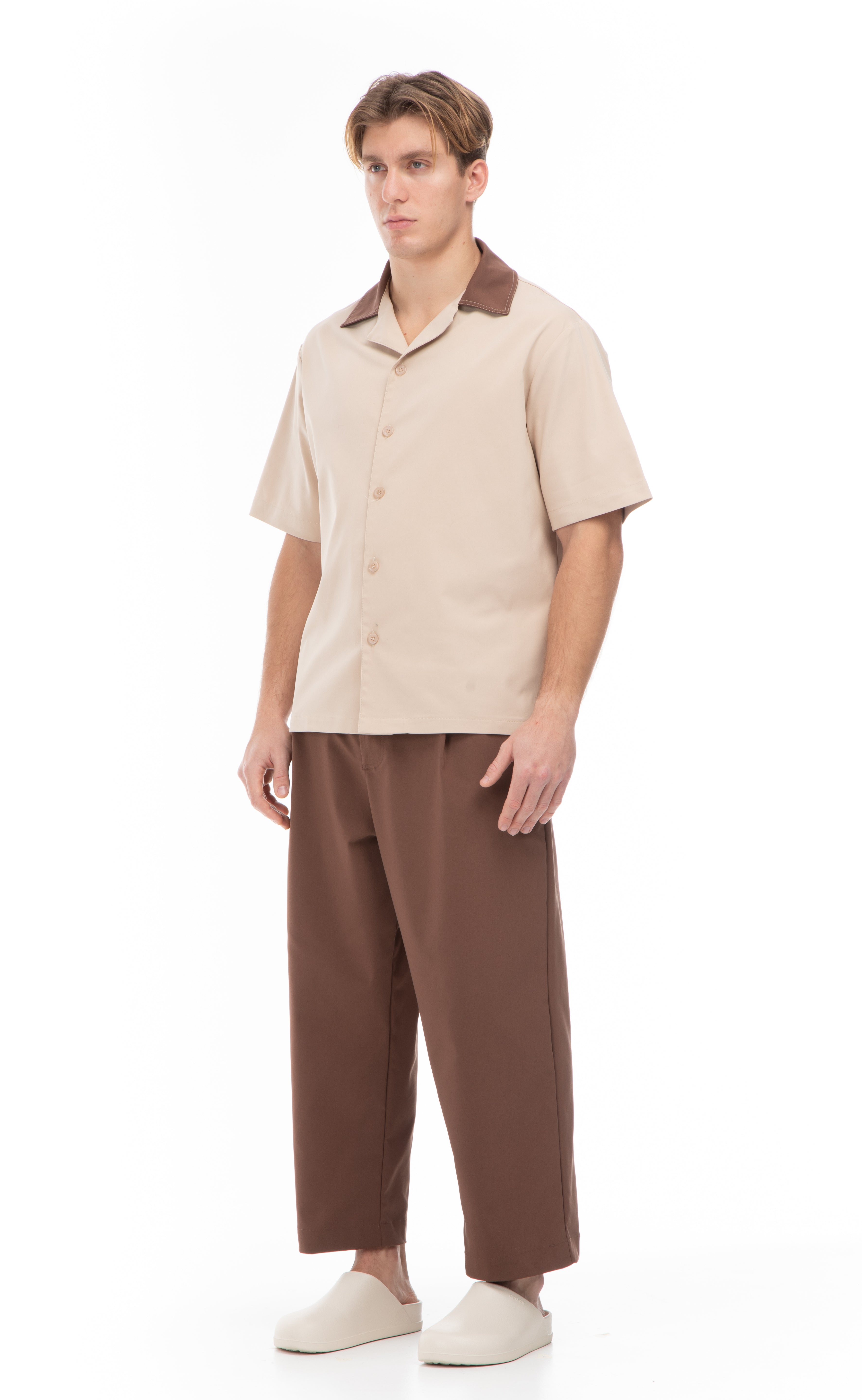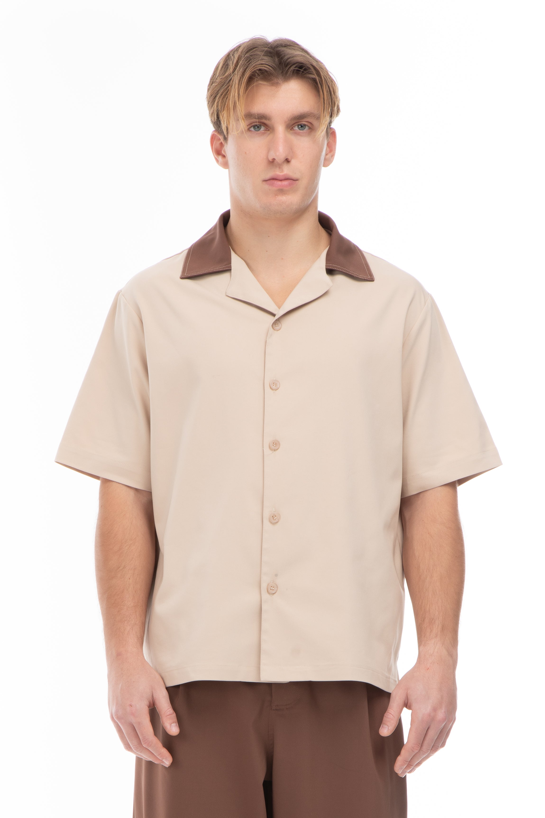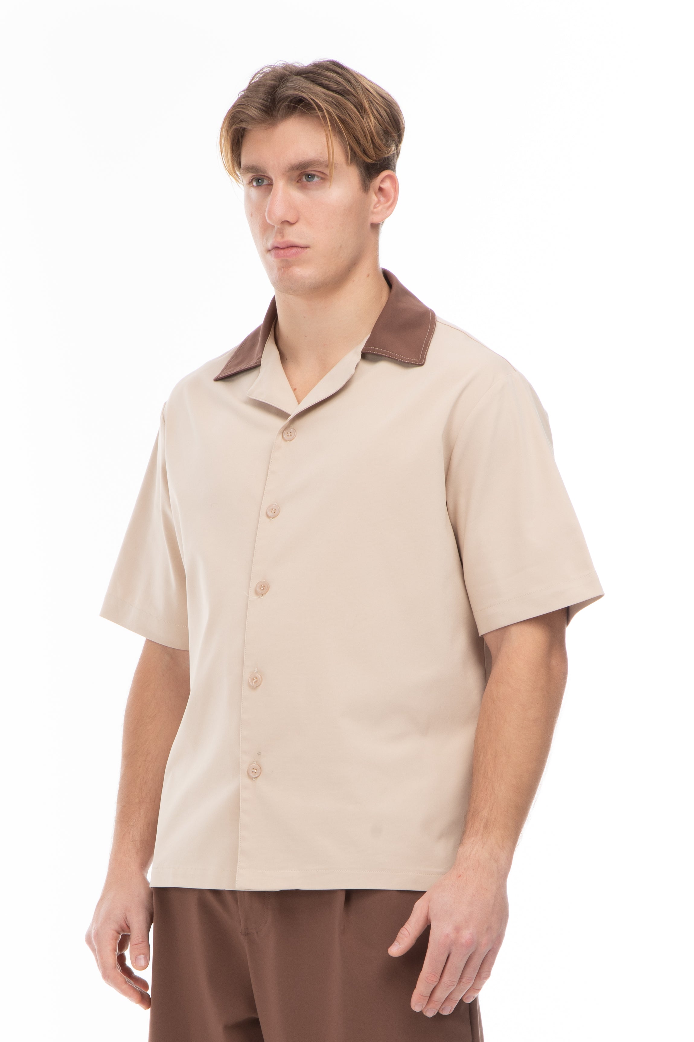 INNOVATION SHIRT-BEIGE/BROWN COLLAR