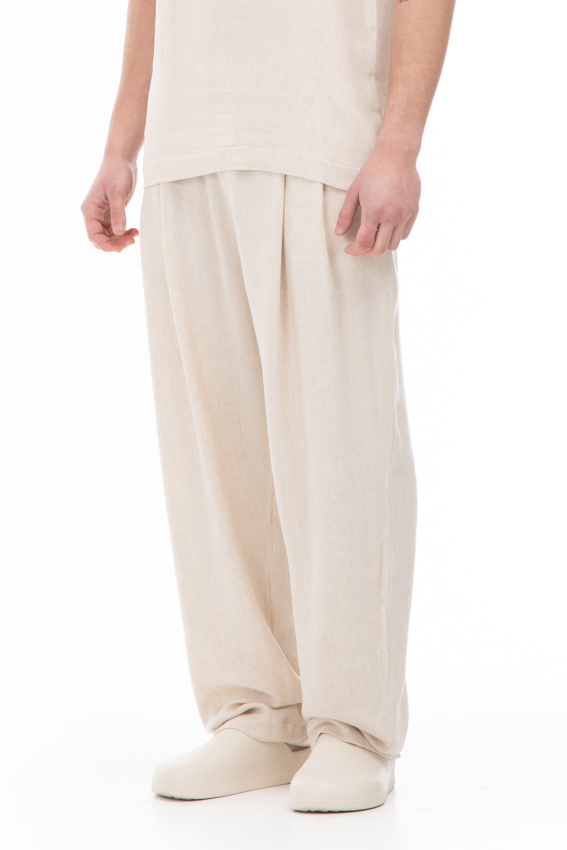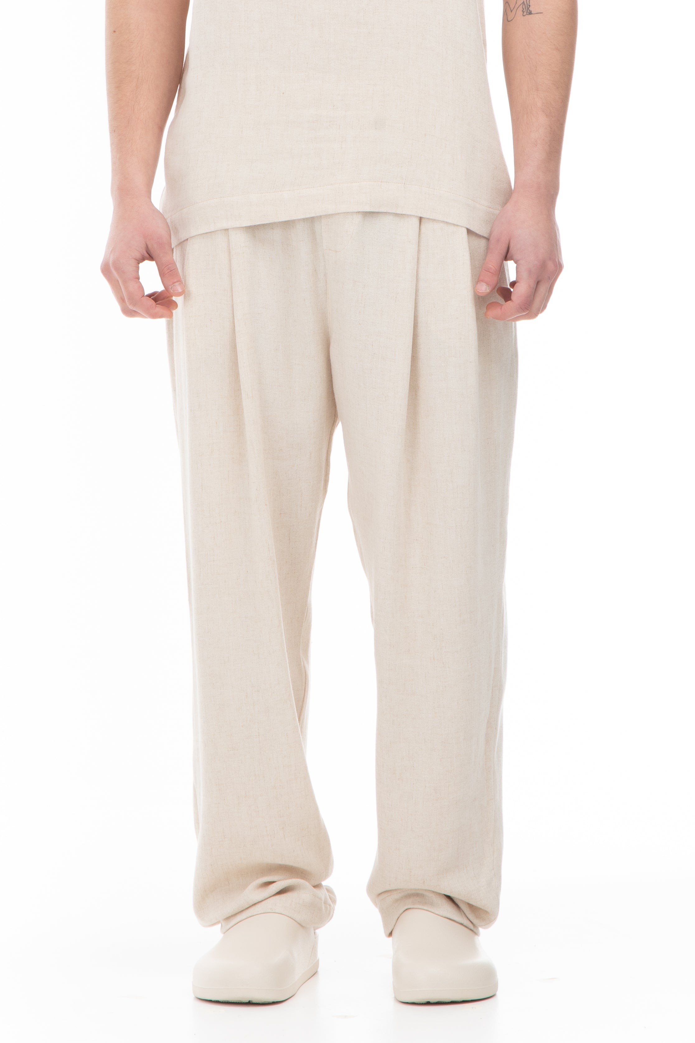 LINEN BLEND PANTS-BEIGE