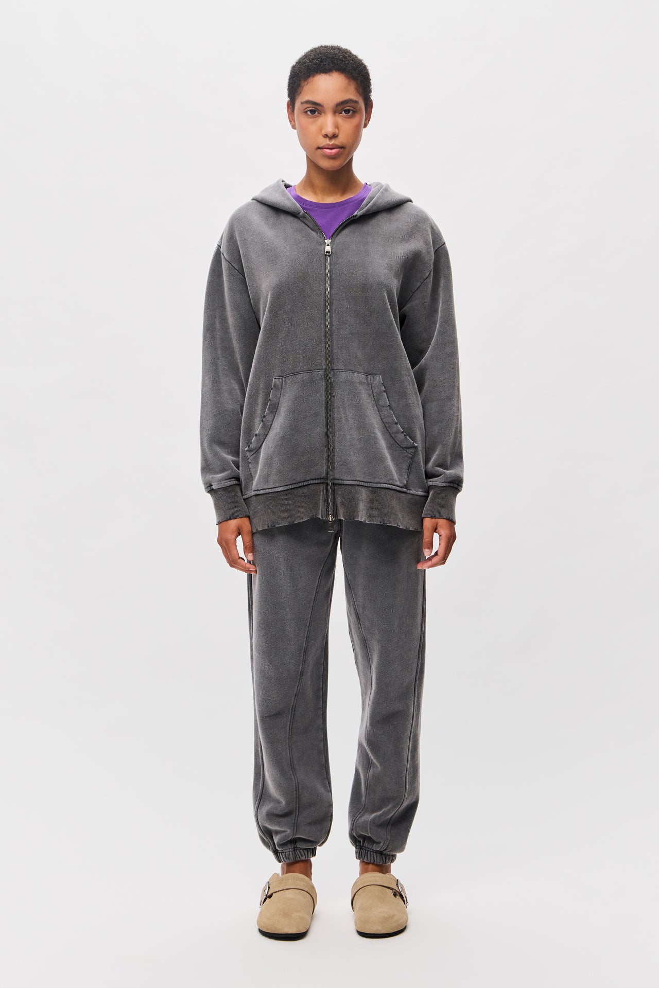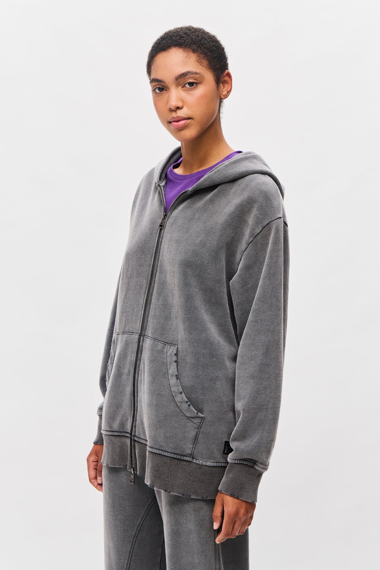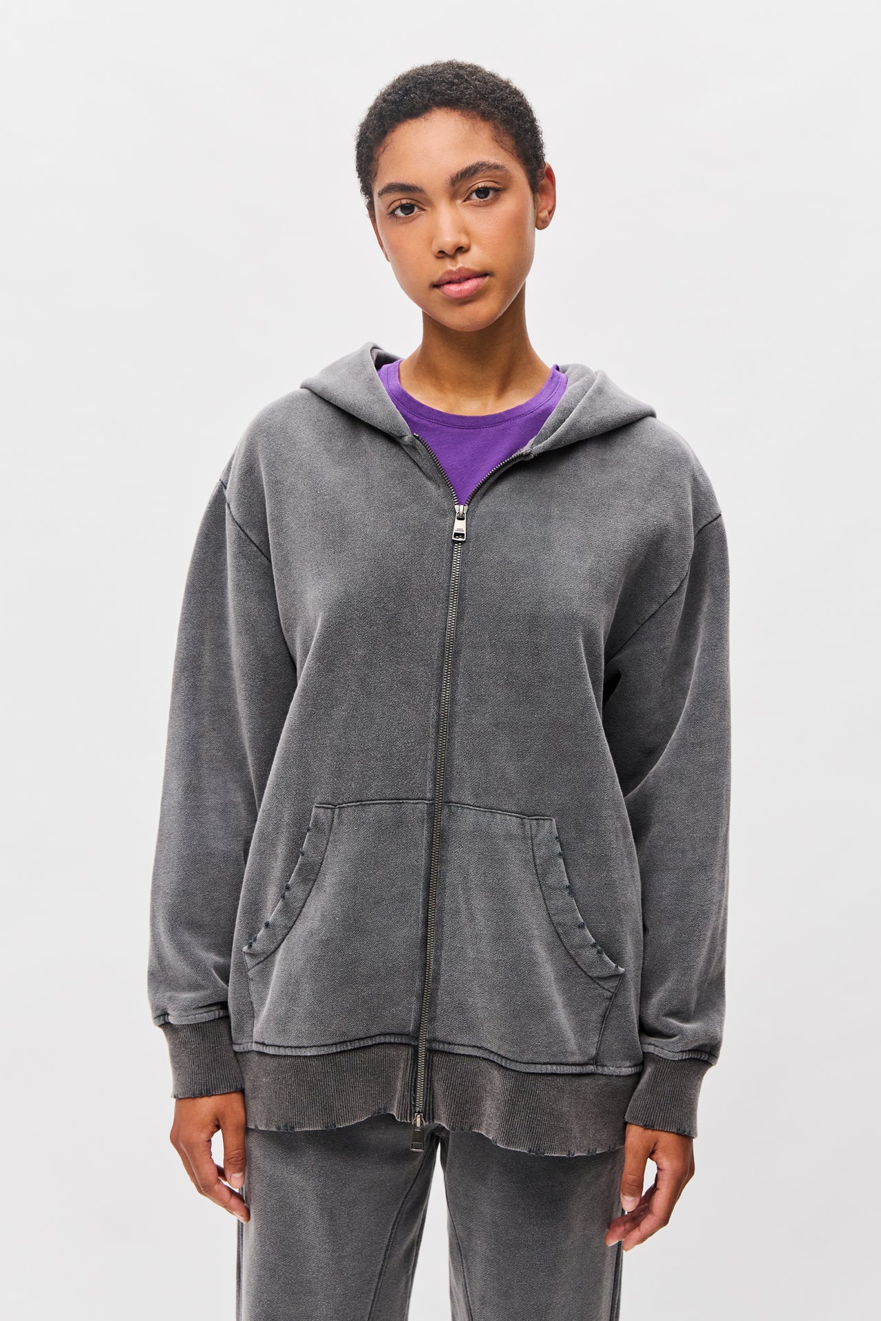 OVERSIZED FULLZIP WITH DESTROYS-VINTAGE GREY