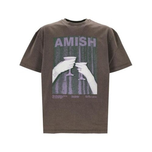 AMISH LOGO T SHIRT MARTINI-WASHED BLACK
