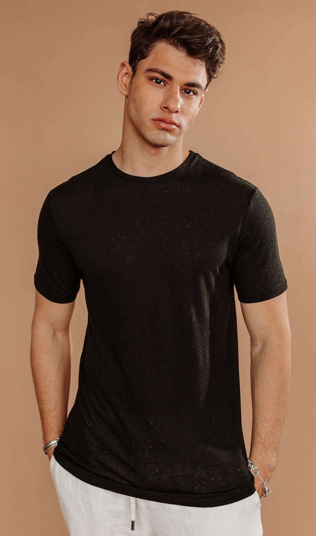 CLASSIC T-SHIRT LINEN VISCOSE-BLACK