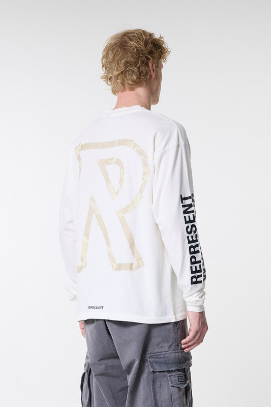 MASKING TAPE INITIAL LS T-SHIRT-FLAT WHITE