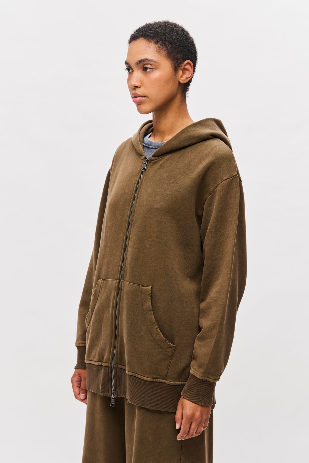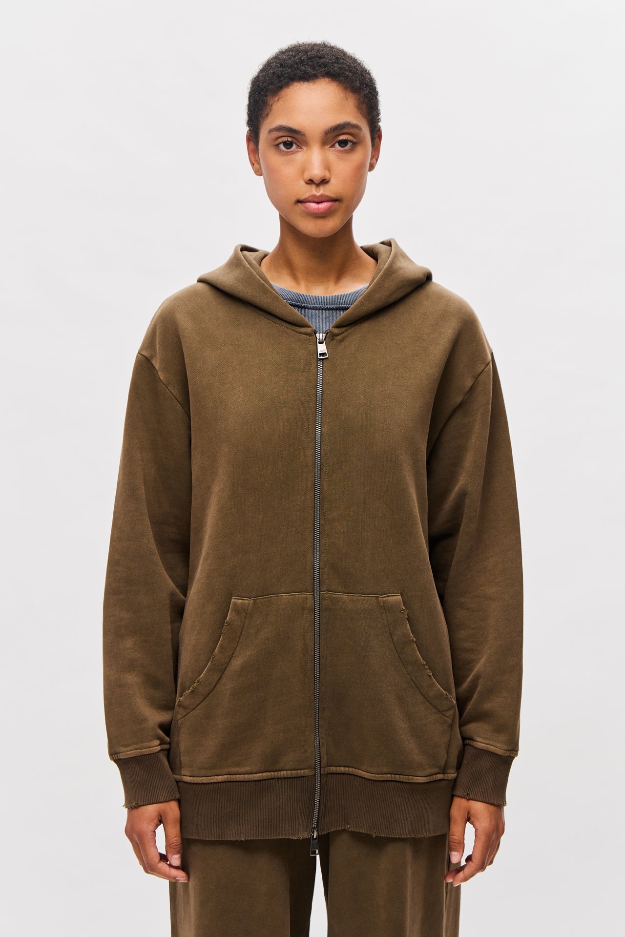 OVERSIZED FULLZIP WITH DESTROYS-VINTAGE COFFEE
